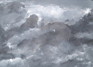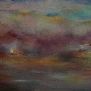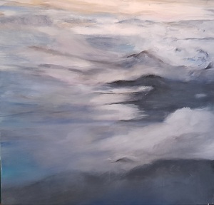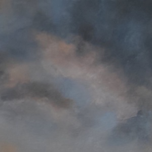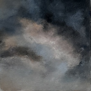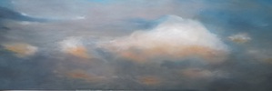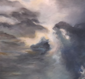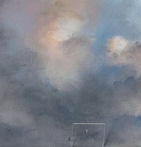 2025Ondergrond opgezet met acryl en verder afgewerkt met olieverf. Ook hier werd met het zetten van de penseelstreken de kleur en het licht dat door de wolken schijnt op doek weergegeven.