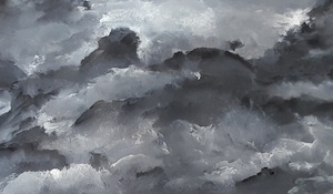 2026Zandstructuur aangebracht op doek, om reliëf te bekomen in het wolkenspel en geschilderd met acryl.